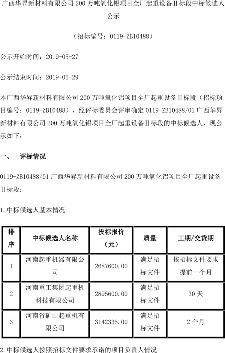 移動(dòng)版:廣西華昇新材料有限公司200萬(wàn)噸氧化鋁項(xiàng)目全廠起重設(shè)備Ⅱ標(biāo)段中標(biāo)候選人公示