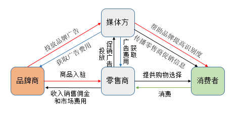 生活中,我們通過媒體(如小紅書)了解新的產(chǎn)品,然后通過零售商(如京東)完成消費。