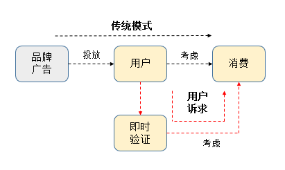 傳統(tǒng)模式:用戶先通過廣告接受品牌,然后考慮是否消費