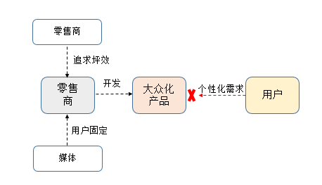 傳統(tǒng)模式:用戶只能選擇同質(zhì)化的滿足共性需求的產(chǎn)品