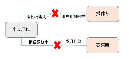 小眾品牌通過傳統(tǒng)媒體投放,銷售成本高且很難得到零售門店的支持,無法有效滿足用戶。
