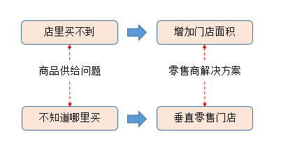 正如上文所說,零售門店會優(yōu)先選擇大眾化消費品上架銷售。因此用戶到店后買不到,或者不知道哪里有售,是司空見慣的事情。