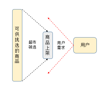 傳統(tǒng)模式:超市先進行商品挑選,然后上架陳列供用戶選擇