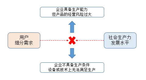 簡單的說,有時我們是沒有能力滿足人們的細分需求(比如200年前想著飛上天),而有些時候即便是我們具備生產(chǎn)能力,企業(yè)也需要承擔巨大的經(jīng)營風險(想想Space X計劃吧)。