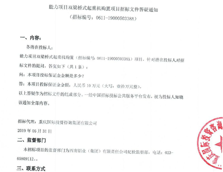 移動版:能力項目雙梁橋式起重機(jī)購置項目招標(biāo)文件答疑通知