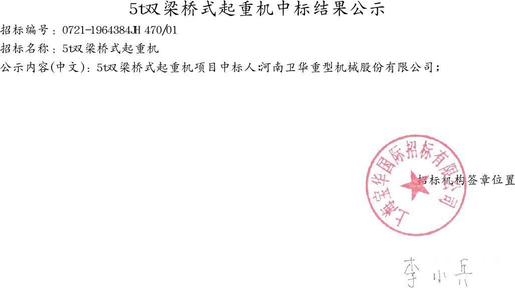 5t雙梁橋式起重機(jī)中標(biāo)結(jié)果公示