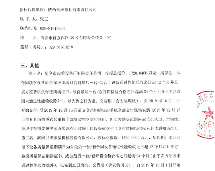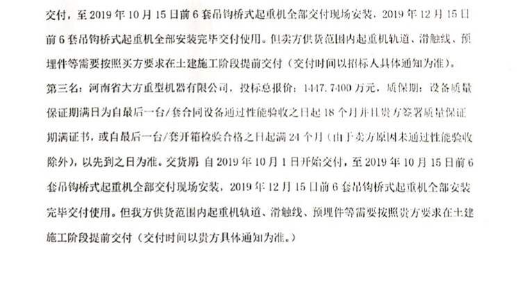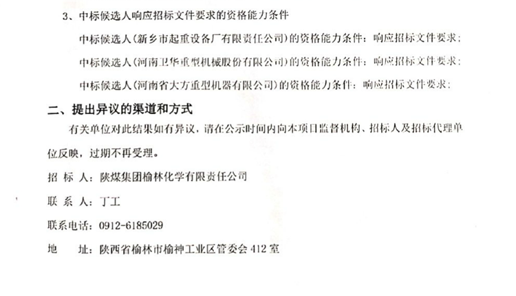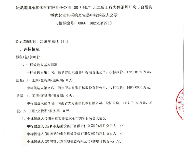 移動(dòng)版:陜煤集團(tuán)榆林化學(xué)有限責(zé)任公司180萬噸/年乙二醇工程大件組焊廠房6臺(tái)吊鉤橋式起重機(jī)采購(gòu)及安裝中標(biāo)候選人公示