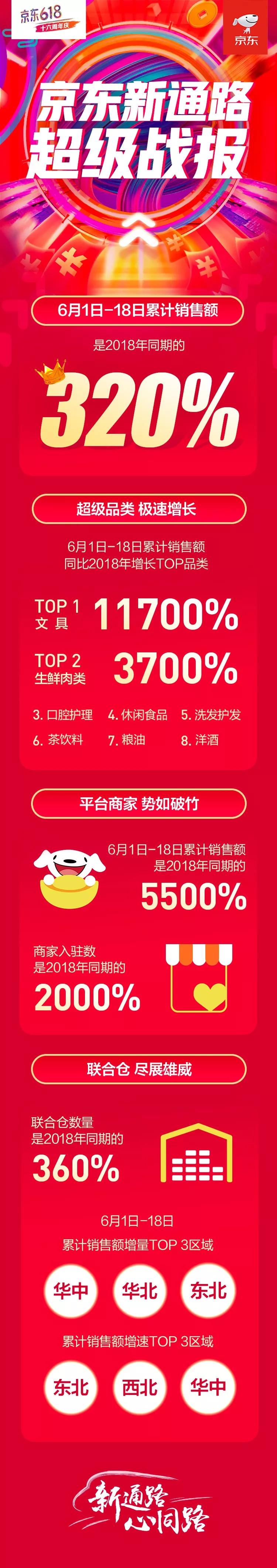 戰(zhàn)報顯示,6月1日至18日,京東新通路累計銷售額達到去年同期的320%。這意味著,京東新通路連續(xù)第四年保持高增長態(tài)勢,并為品牌、品類的極速增長不斷蓄積能量。