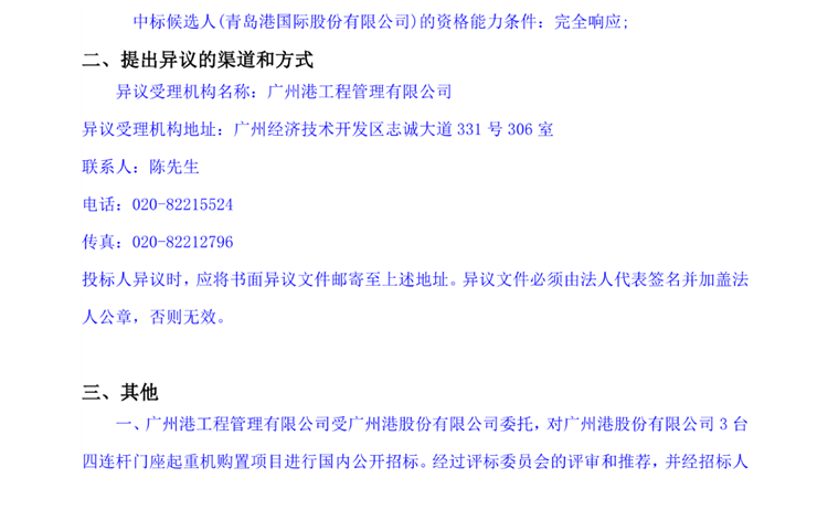 廣州港股份有限公司3臺四連桿門座起重機購置項目中標(biāo)候選人公示