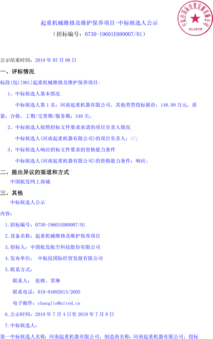 起重機(jī)械維修及維護(hù)保養(yǎng)項(xiàng)目-中標(biāo)候選人公示