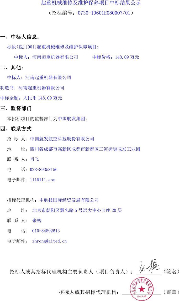 移動版:起重機械維修及維護(hù)保養(yǎng)項目中標(biāo)結(jié)果公示