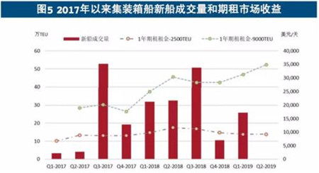 三是航運市場運費走低,部分船型投資收益下滑。受貿(mào)易爭端導致的全球貿(mào)易及工業(yè)生產(chǎn)增速下滑、鐵礦石生產(chǎn)商遭遇重大生產(chǎn)事故等因素影響,上半年,集裝箱、鐵礦石等海運量增速不及預(yù)期,小型集裝箱船及散貨船運營收益同比出現(xiàn)明顯下滑。對于營運型船東來說,按照當前散貨船和集裝箱船的運營收益、新造船投資的資本支出計算,后期的經(jīng)營現(xiàn)金流將非常緊張,投資收益較低;對于以資產(chǎn)增值作為目標的投機性船東來說,考慮到當前正處于船舶資產(chǎn)價格的小周期高位,并不是較好的投資時點,因此部分細分船型市場活躍度明顯較低。