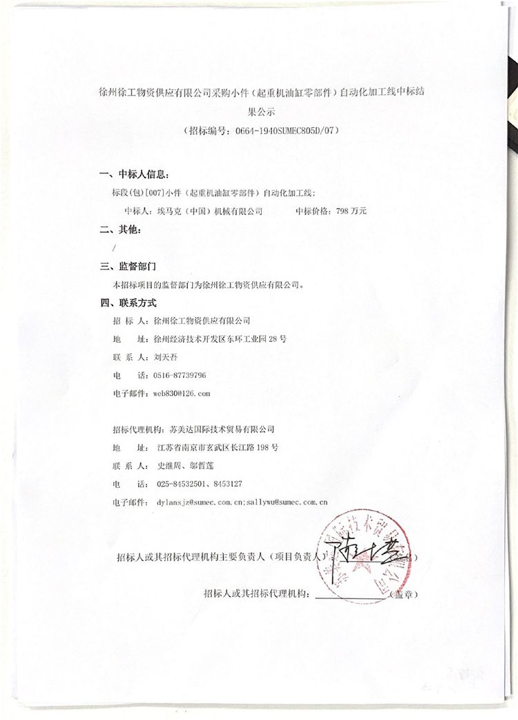 移動(dòng)版:徐州徐工物資供應(yīng)有限公司采購(gòu)小件(起重機(jī)油缸零部件)自動(dòng)化加工線中標(biāo)結(jié)果公示