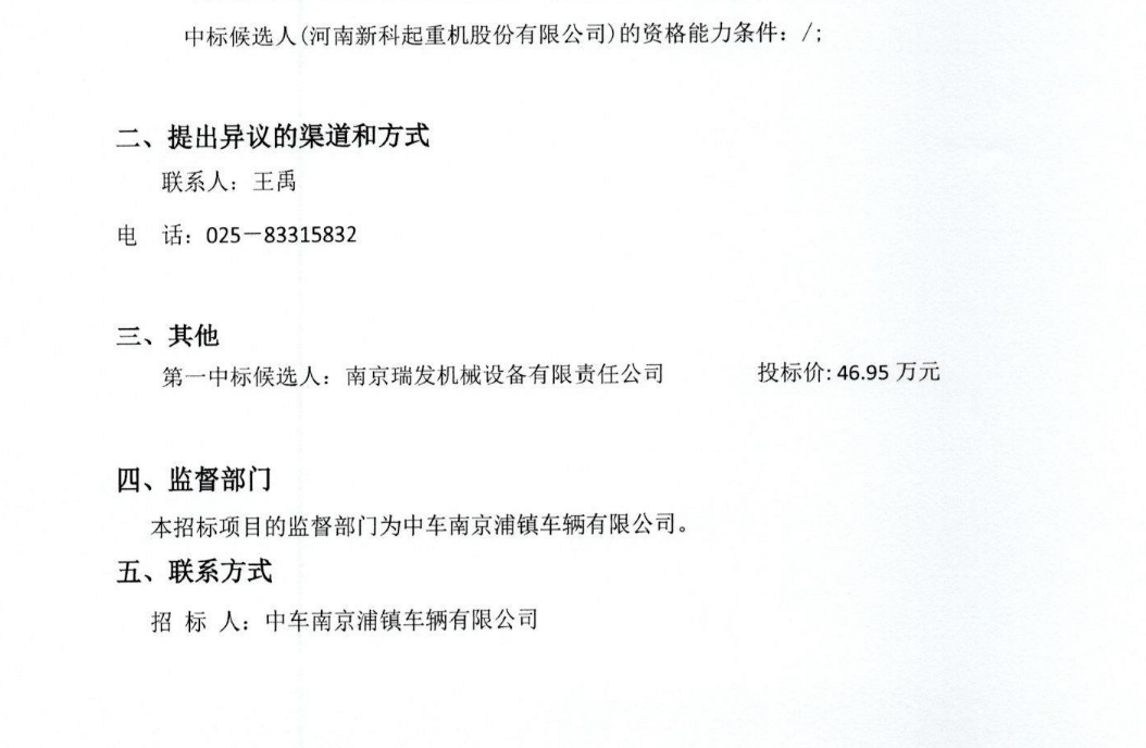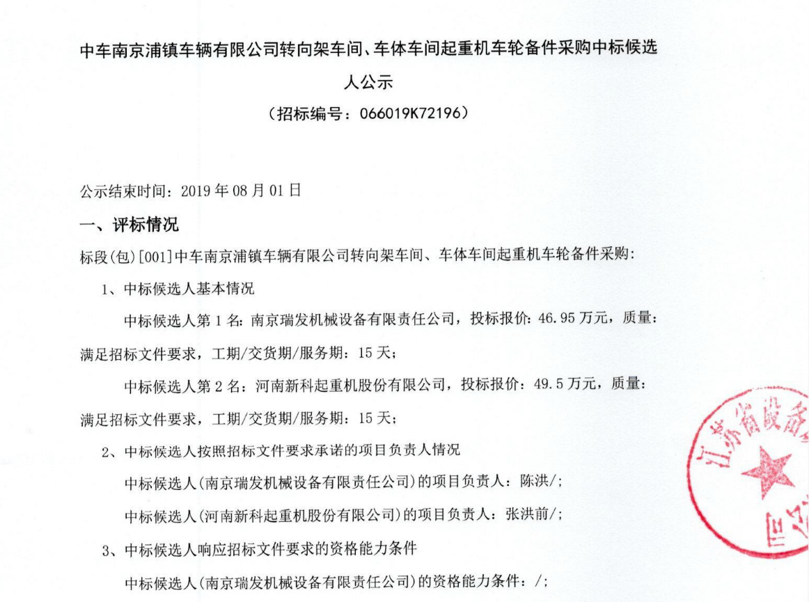 移動版:中車南京浦鎮(zhèn)車輛有限公司轉(zhuǎn)向架車間、車體車間起重機車輪備件采購中標候選人公示