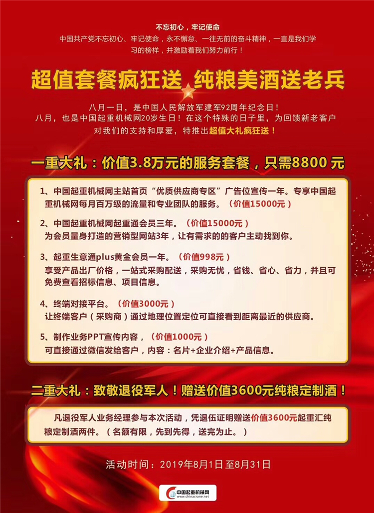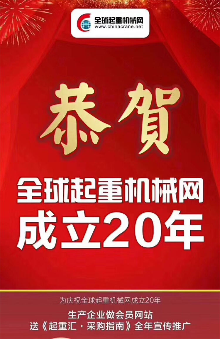 • 官宣!《起重匯·采購指南》總第20期圓滿收官!官宣!《起重匯采購指南》總第20期圓滿收官!感謝新老客戶的支持,感謝全體同事的付出,感謝在最美的時光我們彼此相遇! 因為相信,所有一切都變得更有意義! 2020抱團抗風浪,攜手贏未來,風雨同舟,我們同行! 好產(chǎn)品推廣聯(lián)系:13683732114好...[詳情]