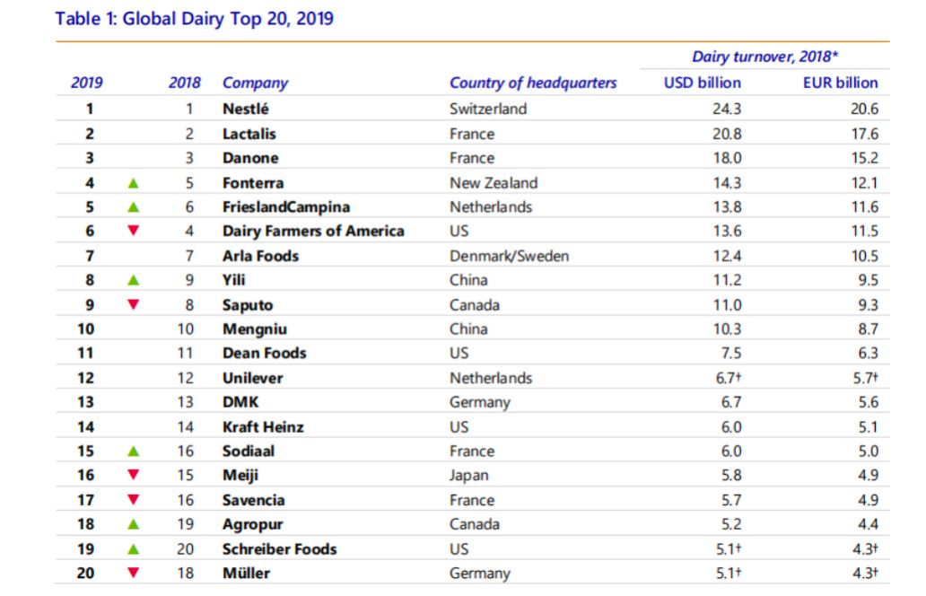 在最新的全球乳業(yè)二十強(qiáng)排名中,伊利位居第八位,按照美元計(jì)算,伊利去年同比增長13.4%。從前20強(qiáng)的動(dòng)作中,可以發(fā)現(xiàn),乳制品的增長正在慢慢變緩,很多企業(yè)都開始投資基本乳制品以外的產(chǎn)品,比如奶酪、無動(dòng)物蛋白等,并購合作成為新趨勢(shì)。