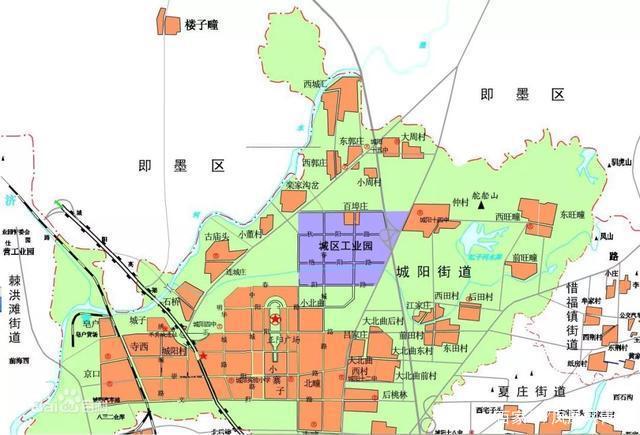 兩大片區(qū)所處的城陽街道,西靠棘洪灘街道,東鄰惜福鎮(zhèn)街道,南連流亭街道和夏莊街道,北與即墨區(qū)接壤。最大橫距11.9公里、縱距9.5公里,總面積52.5平方公里。