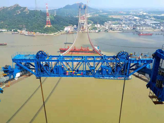鎮(zhèn)江五峰山長江大橋南北兩岸四臺纜載起重機全部吊裝完成!