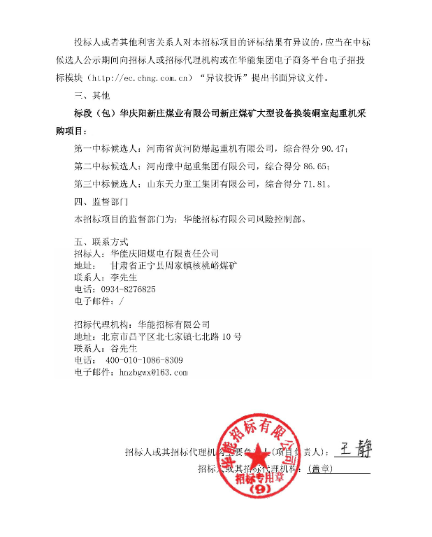 移動版:慶陽新莊煤業(yè)有限公司新莊煤礦大型設(shè)備換裝硐室起重機(jī)采購項目中標(biāo)候選人公示