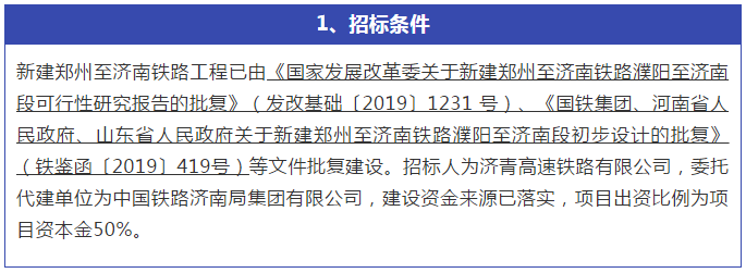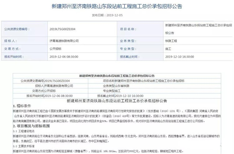 昨天,濟(jì)青高速鐵路有限公司正式發(fā)布了《新建鄭州至濟(jì)南鐵路山東段站前工程施工總價(jià)承包招標(biāo)公告》,這標(biāo)志著鄭濟(jì)高鐵山東段即將進(jìn)入正式施工階段。計(jì)劃總工期4年,預(yù)計(jì)2020年1月開工,2023年底建成通車。