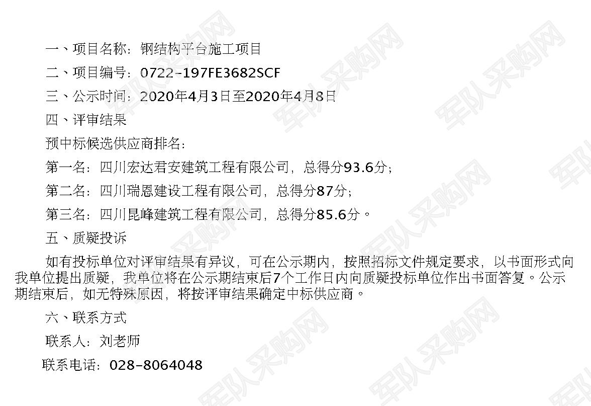 移動(dòng)版:某單位鋼結(jié)構(gòu)平臺(tái)施工項(xiàng)目中標(biāo)公告(0722-197FE3682SCF)