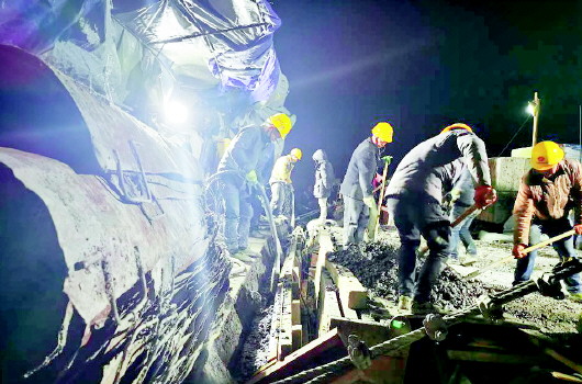 工人們凌晨3點(diǎn)加班施工。