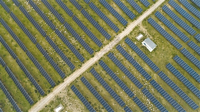 羊群在青海省海南藏族自治州共和光伏產業(yè)園吃草。新華社記者 吳剛 攝