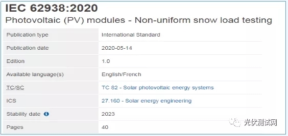 6月5日,IEC專(zhuān)家組發(fā)布了一項(xiàng)新的標(biāo)準(zhǔn):IEC 62938,特別針對(duì)光伏組件的戶(hù)外雪壓承載能力做了新的規(guī)定。