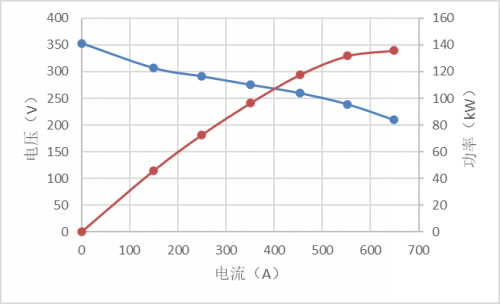 據(jù)了解,作為驥翀氫能第一代電堆產(chǎn)品MH170的升級(jí)版,該電堆由370節(jié)單池構(gòu)成,其中雙極板及膜電極等電堆部件均為國(guó)產(chǎn);實(shí)測(cè)功率曲線如圖2所示,裸堆最大輸出體積比功率密度達(dá)到4.7kW/L,質(zhì)量比功率密度達(dá)到4.0kW/L。