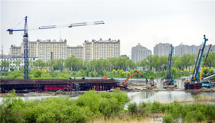 作為梅河口城區(qū)內(nèi)最大的城市基礎設施建設工程,梅河口城市濕地觀光帶集防洪、灌溉、園林三位一體。工程總投資6億元,其中水利工程2.2億元,景觀建設工程3.8億元。圖為施工現(xiàn)場。孔方 攝