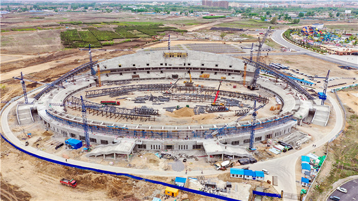2020年,梅河口市列入全省“三早”行動項目99個,總投資606億元,年度計劃投資170億元。圖為總投資3億元的梅河口市萬人體育場項目施工現(xiàn)場。趙世闊 攝