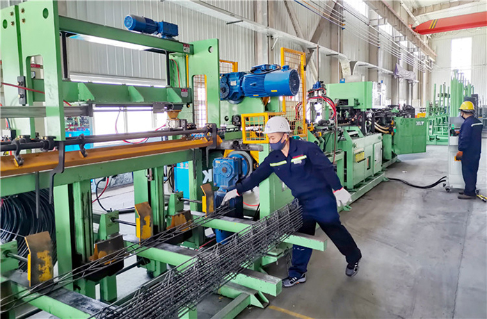 松原市積極推進招商引資和項目建設,截至目前,全市已開工建設5000萬元以上項目102個。這是總投資5億元的吉林省飛達杭蕭建筑科技有限公司鋼筋桁架焊接生產(chǎn)線??追?攝