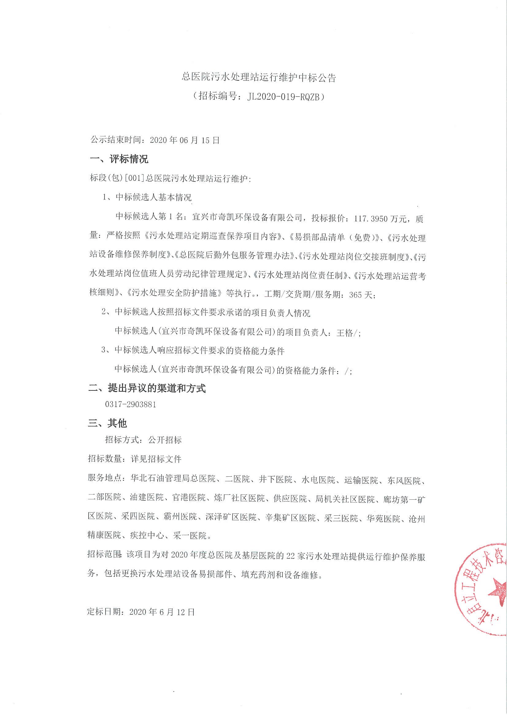 移動(dòng)版:總醫(yī)院污水處理站運(yùn)行維護(hù)中標(biāo)公告