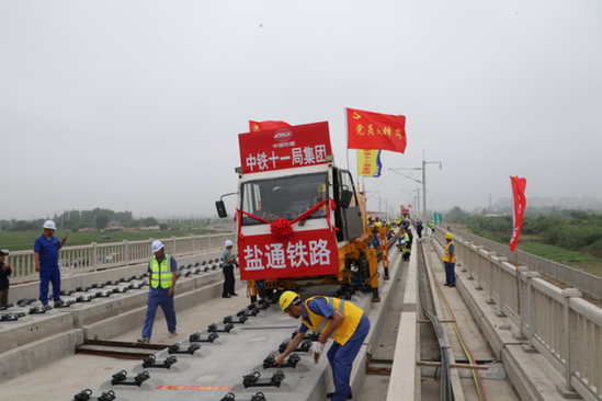 重點(diǎn)工程進(jìn)行時(shí):鹽通高鐵開始鋪軌