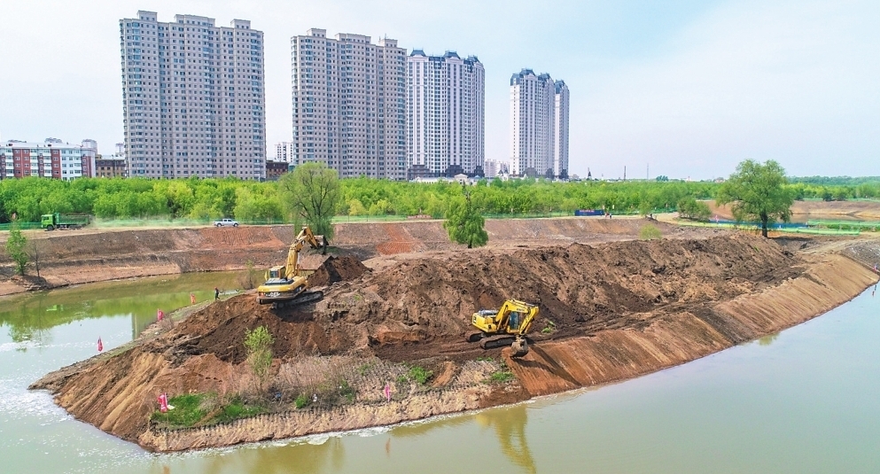 松花江南岸生態(tài)修復(fù)工程施工現(xiàn)場。陳志偉 記者 劉億服 攝