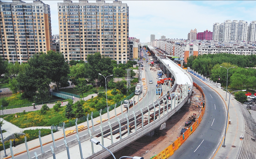 13日,哈爾濱市道里區(qū)城鄉(xiāng)路高架體系-安陽路支線橋工程橋梁已架設(shè)完成,工人正在進行橋面鋪設(shè)和設(shè)施的安裝。預(yù)計6月30日安陽路支線橋全線貫通,7月中旬通車,屆時,這里交通將變得更加順暢。( 來源: 黑龍江日報 記者 蘇強攝)
