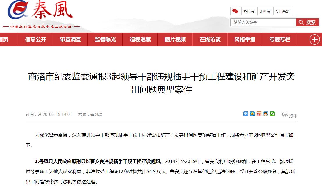 移動(dòng)版:違規(guī)插手干預(yù)工程建設(shè)和礦產(chǎn)開發(fā) 商洛通報(bào)3起案件