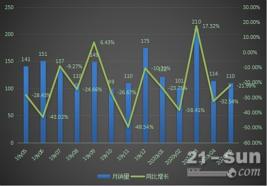 2019.5-2020.5推土機(jī)月度銷(xiāo)售情況