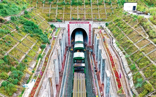 大臨鐵路位于云南省西南部,全長(zhǎng)202公里,其中正線橋隧176公里,全線橋隧比87%,為國(guó)鐵Ⅰ級(jí)單線電氣化鐵路。大臨鐵路通車(chē)后,昆明至臨滄僅需3小時(shí)左右,將結(jié)束云南臨滄不通鐵路的歷史,有效改善滇中、滇西區(qū)域綜合交通運(yùn)輸體系,服務(wù)沿線地區(qū)經(jīng)濟(jì)社會(huì)發(fā)展,推進(jìn)我國(guó)與周邊國(guó)家互聯(lián)互通。李英利攝(中經(jīng)視覺(jué))