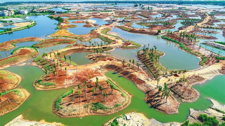 近日,俯瞰完成園林綠化種植的??诮瓥|新區(qū)邁雅河區(qū)域生態(tài)修復(fù)項目示范區(qū)。目前,該項目總施工進(jìn)度已完成過半,計劃今年底完工,高質(zhì)量建成江東新區(qū)首個濱海生態(tài)休閑區(qū)。