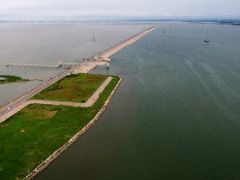 從空中俯瞰,青草沙水庫宛若一塊寶石,鑲嵌在長江口。堤壩圍起的青草沙水庫湖面,不時(shí)有飛鳥掠過。登上水庫堤壩,滾滾長江水與迎面海風(fēng)讓人心曠神怡。