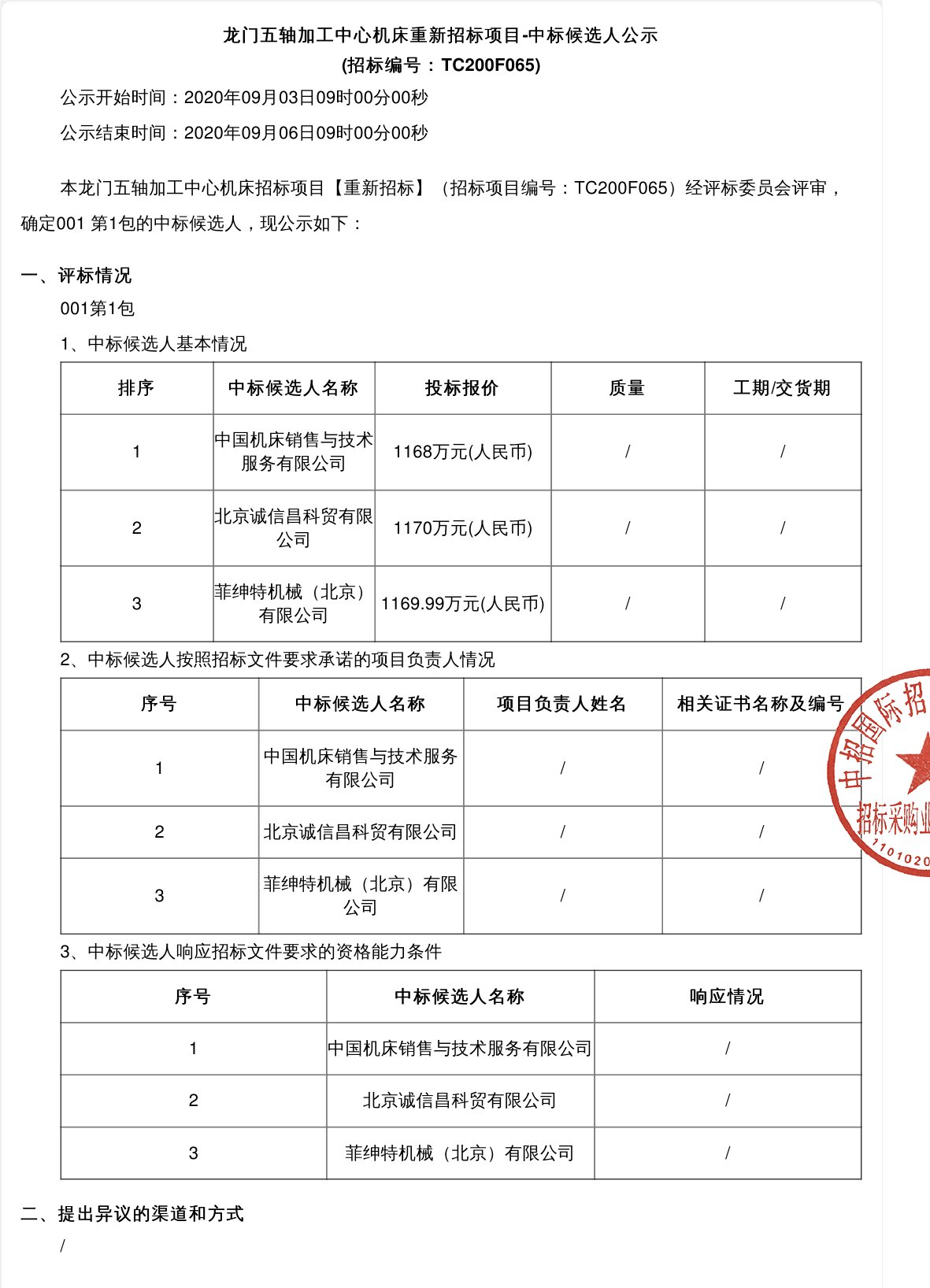 移動(dòng)版:龍門五軸加工中心機(jī)床重新招標(biāo)項(xiàng)目-中標(biāo)候選人公示