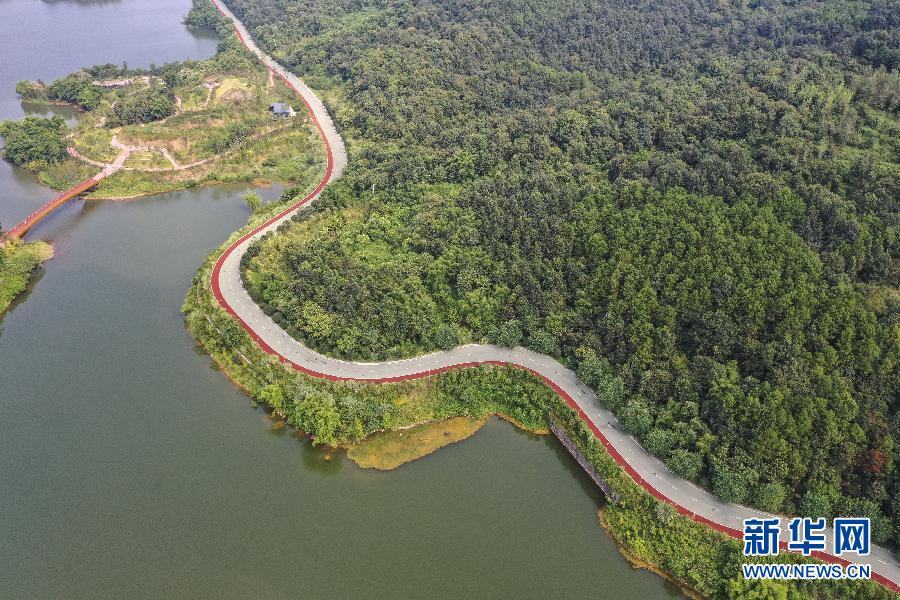 這是9月2日在重慶市銅梁區(qū)玄天湖拍攝的西郊綠道(無人機照片)。新華社記者 黃偉 攝