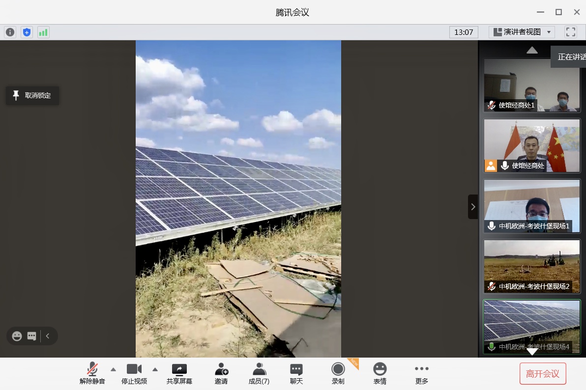 劉波公參視頻連線中機(jī)考波什堡光伏電站項(xiàng)目施工現(xiàn)場(chǎng)