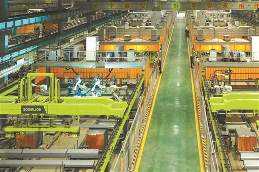 中聯(lián)重科常德塔機(jī)智能工廠一期工程,擁有12條自動(dòng)化生產(chǎn)線,1萬多個(gè)傳感器、100多臺工業(yè)機(jī)器人、35臺無人搬運(yùn)小車、16套數(shù)控加工中心等先進(jìn)設(shè)備,平均每10分鐘產(chǎn)出1節(jié)標(biāo)準(zhǔn)節(jié),每90分鐘生產(chǎn)一條起重臂。 湖南日報(bào)·華聲在線記者 唐俊 攝
