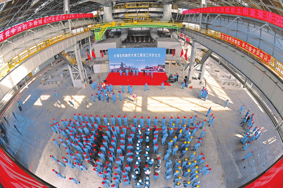 太鋼五號(hào)高爐大修工程竣工開(kāi)爐儀式現(xiàn)場(chǎng)。王旭宏攝