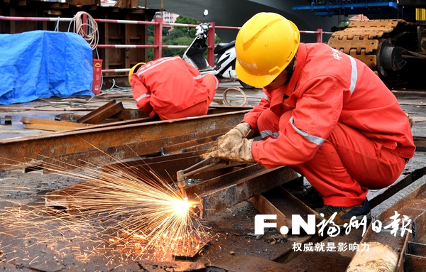 工人在洪山橋建設工地焊接安全防護構件。記者 葉義斌 攝