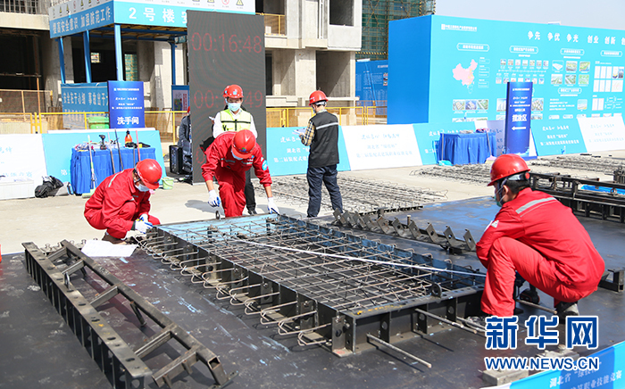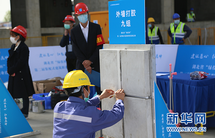 湖北省“綠投杯”第二屆裝配式建筑職業(yè)技能競賽現(xiàn)場。新華網(wǎng)連迅 攝