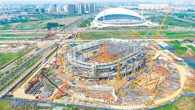 移動版:??谖逶春游捏w中心二期項(xiàng)目體育館雛形初現(xiàn)展雄姿