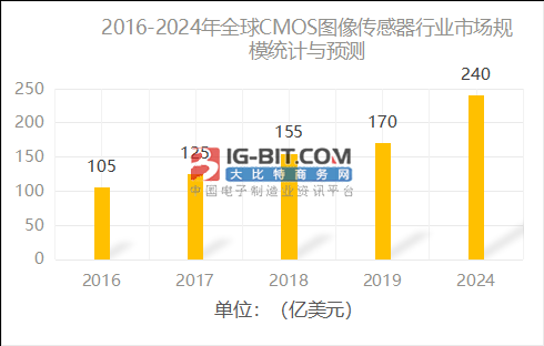 CMOS圖像傳感器是一種典型性的固態(tài)顯像傳感器,一般由像敏模塊列陣、行控制器、列控制器、AD轉(zhuǎn)換器、系統(tǒng)總線輸出插口、操縱插口等幾部分構(gòu)成,這幾部分一般都被集成化在同一塊單晶硅片上。從圖上的數(shù)據(jù)信息得知,2018年全球CMOS圖像傳感器行業(yè)市場規(guī)模做到155億美金;上年全球CMOS圖像傳感器行業(yè)市場規(guī)模做到170億美金,增長速度是9.7%;預(yù)估2024年全球CIS市場規(guī)模將做到240億美金,除開手機(jī)外,轎車智能化系統(tǒng)的必要性也持續(xù)升高。
